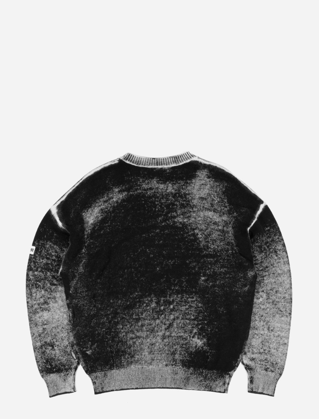 Our Ashes sweater is made in a thick knit. It features a washed jacquard effect, making each piece unique. It features a boxy cut with ribbed collar and cuffs.