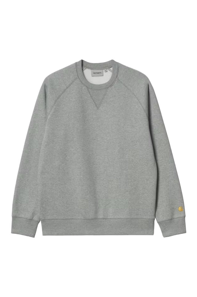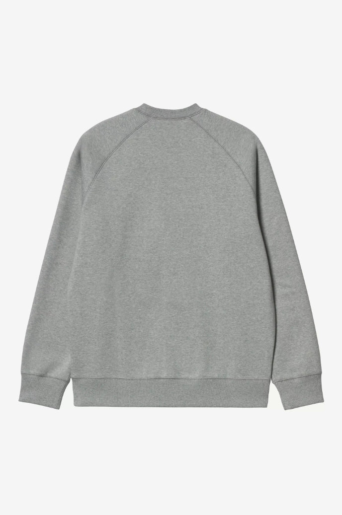 The Chase Sweatshirt is constructed from heavyweight polycotton fabric in a regular fit. The fabric has also been brushed, giving it a fleece-like backing. The item features raglan sleeves and is detailed with flatlock stitching. An embroidered 'C' Logo appears on the left sleeve.