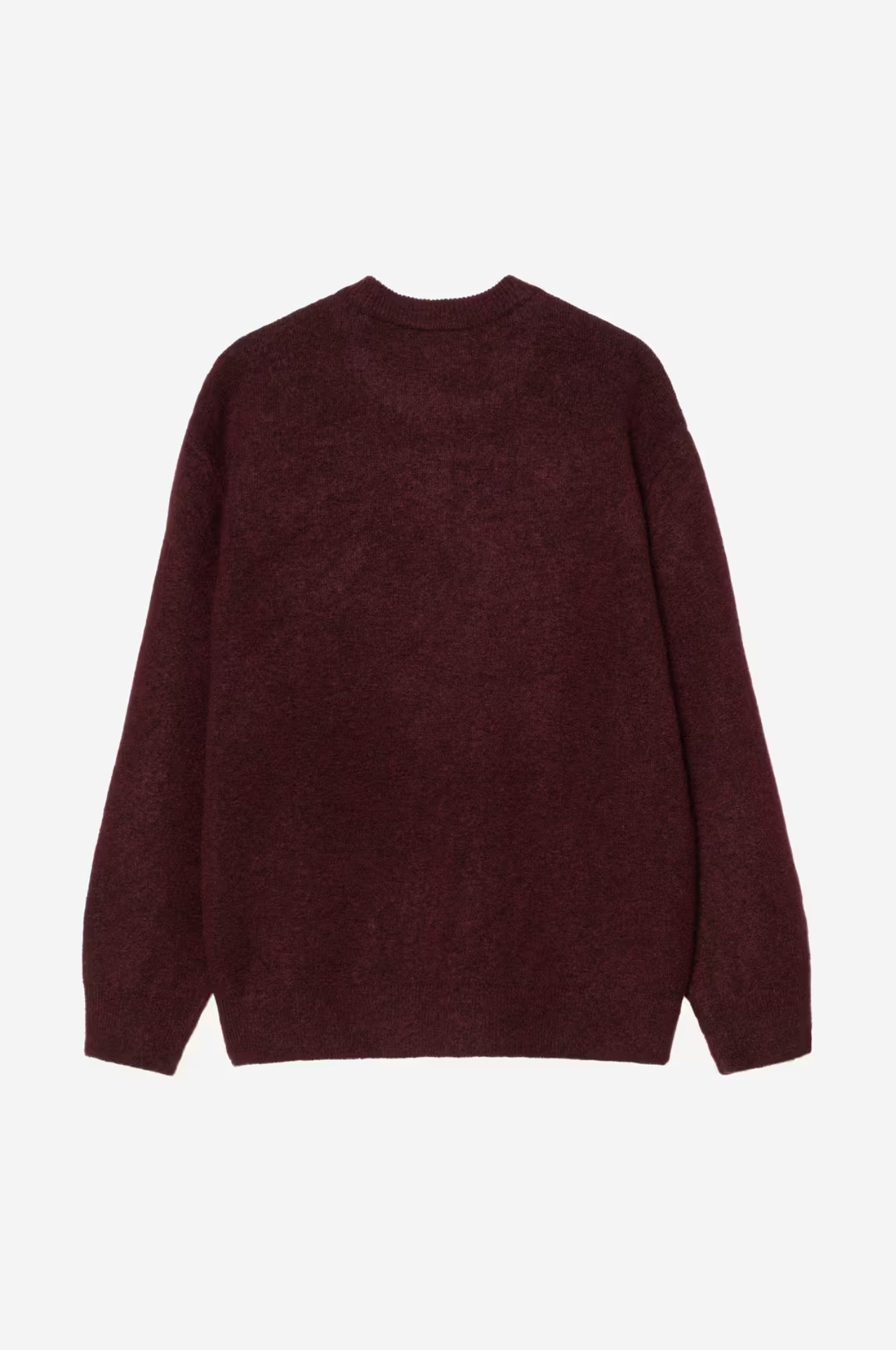 The Chedda Sweater is a midweight knit made from a blend of synthetic and natural yarn. A large jacquard motif appears on the front.