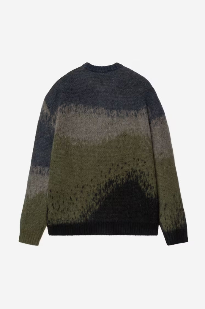 The Tinley Sweater is made from a blend of brushed alpaca wool, nylon, and acrylic yarn, featuring a jacquard design. A woven Square Label appears at the hem.