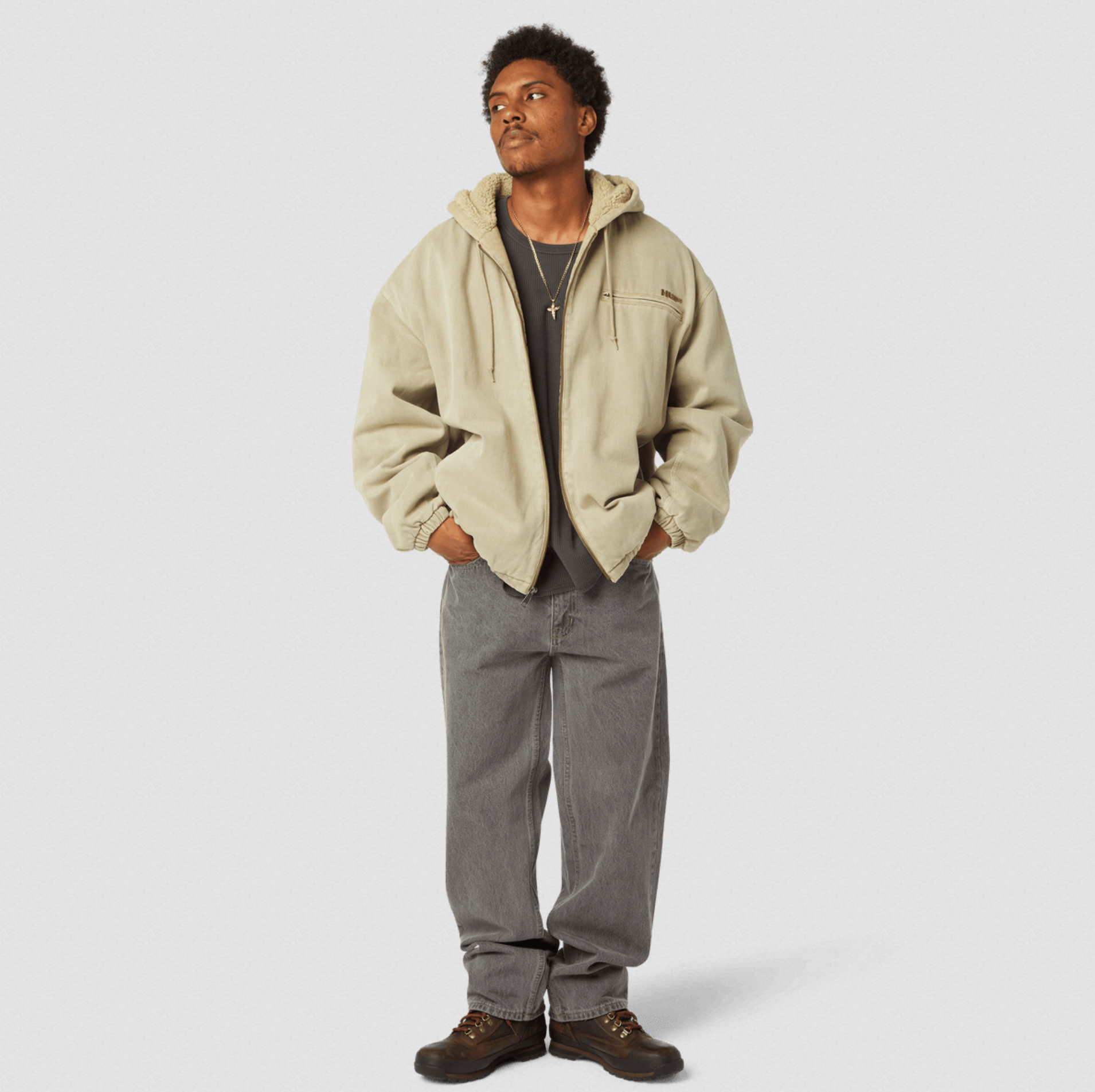 • 100% cotton overdyed denim (12.5OZ) hooded work jacket