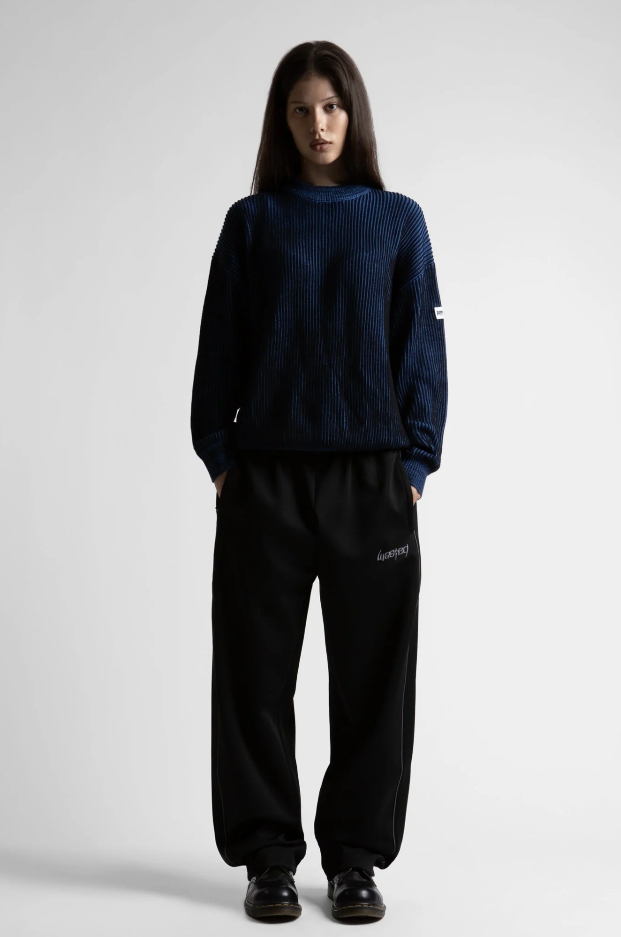 The Pusher Sweater is made in a thick mesh. It features a boxy fit with ribbed collar and cuffs, and a Pusher label on the arm.
