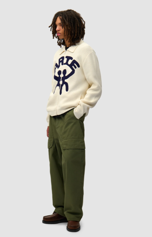 Made from premium cotton, the Blooming Ideas Cardigan in cream features a cord embroidered graphic on the front in navy and is finished with two side pockets and a full-length zipper.