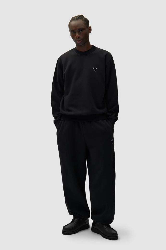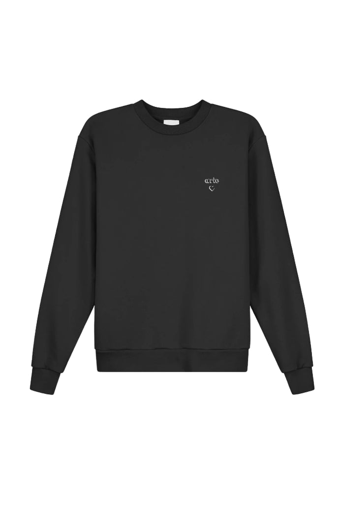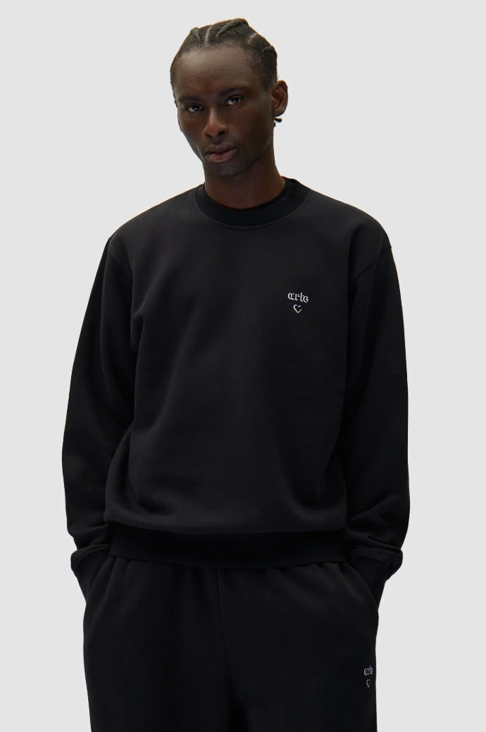 The crewneck features a seasonal take on the Arte logo embroidered in white on the left of the chest. Made from premium heavyweight cotton, the black crewneck has a slightly higher neck and a relaxed fit which is finished with ribbed cuffs, hem and neckline.