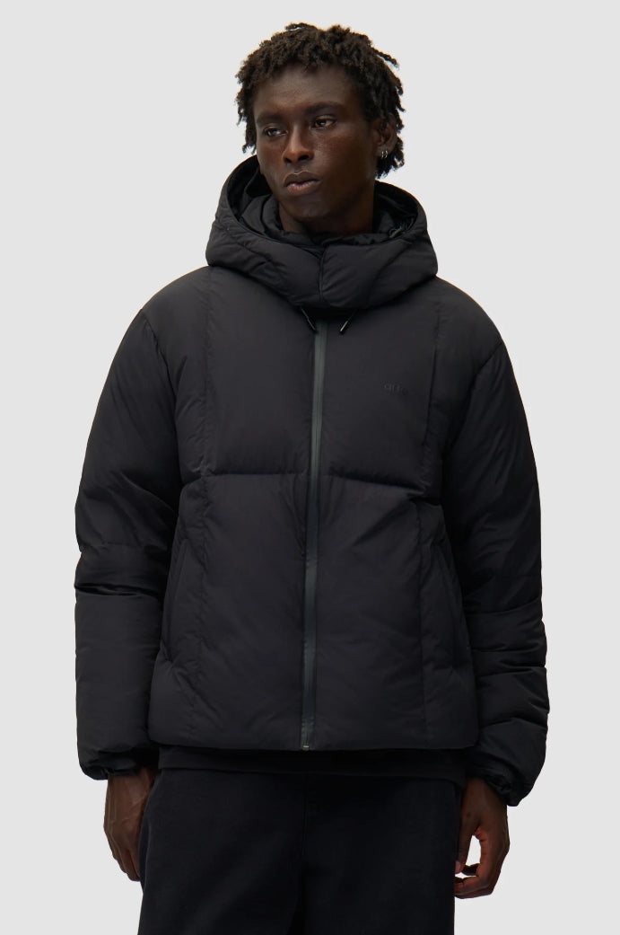 The puffer is crafted from premium nylon and stands out because of the big panel stitching. It's generously filled with Primaloft, and has drawstrings at the hem to adjust to a perfect fit. The black puffer features a detachable hood, zipper closure and two welt side pockets, finished off with a tonal arte logo on the left chest.