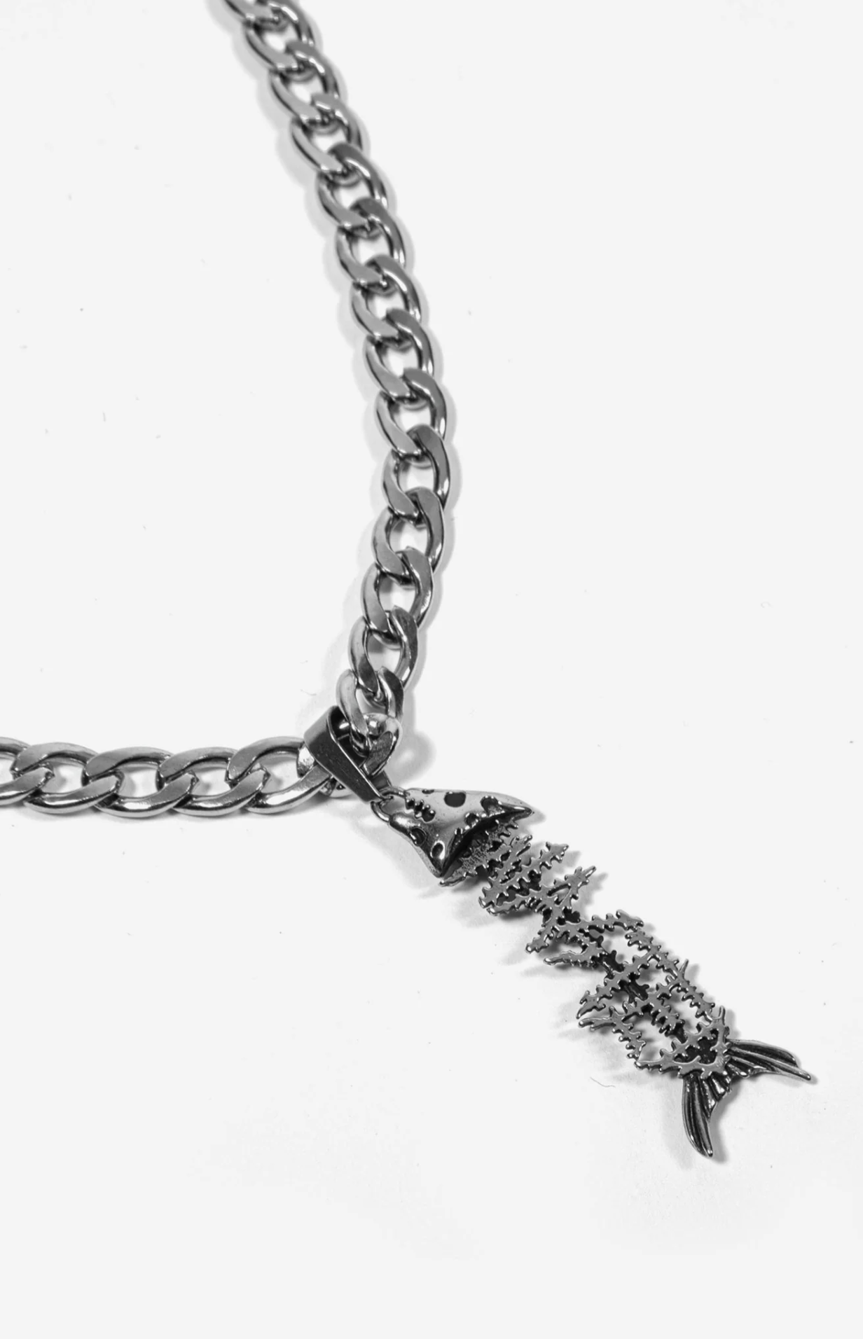 The Surrender Necklace is made of stainless steel, features a Wasted logo pendant, and is adjustable in length.