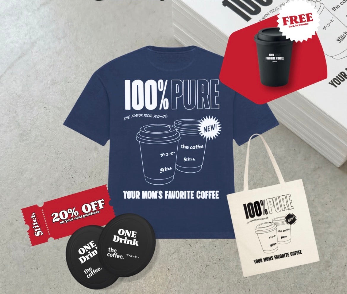 The Stitch x The Coffee Bundle comes with an exclusive T-shirt, a coffee mug, free drinks at THE COFFEE, and a Stitch voucher.