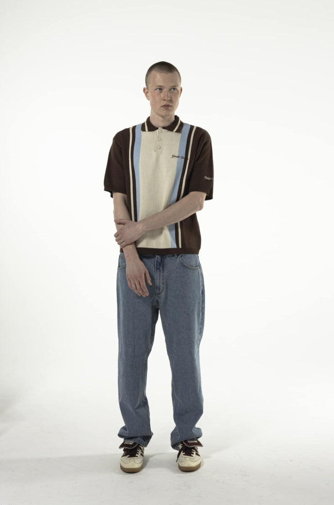 Blue, Brown & Ecru Striped Knit