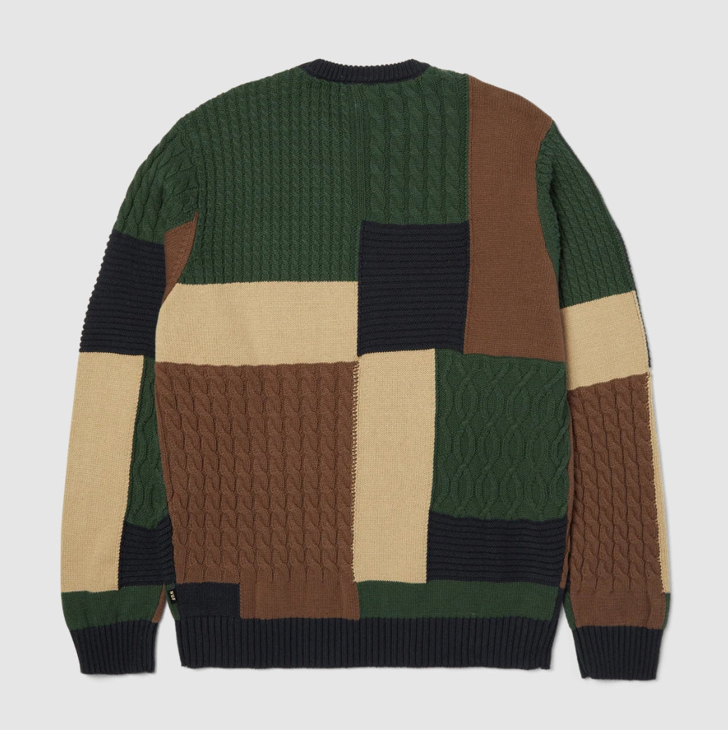 Patchwork pattern that goes hard, the Columbia Cable Knit Sweater blends engineered pattern and Earth tone hues with a classic crewneck sweater construction.