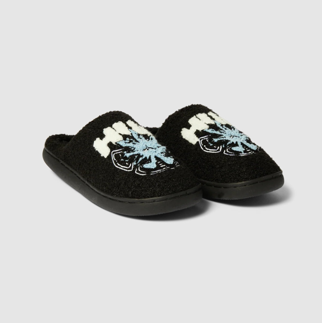 • 100% polyester slipper• Ultra-cozy fuzzy-lined slipper• 'Green Buddy' artwork and HUF branding