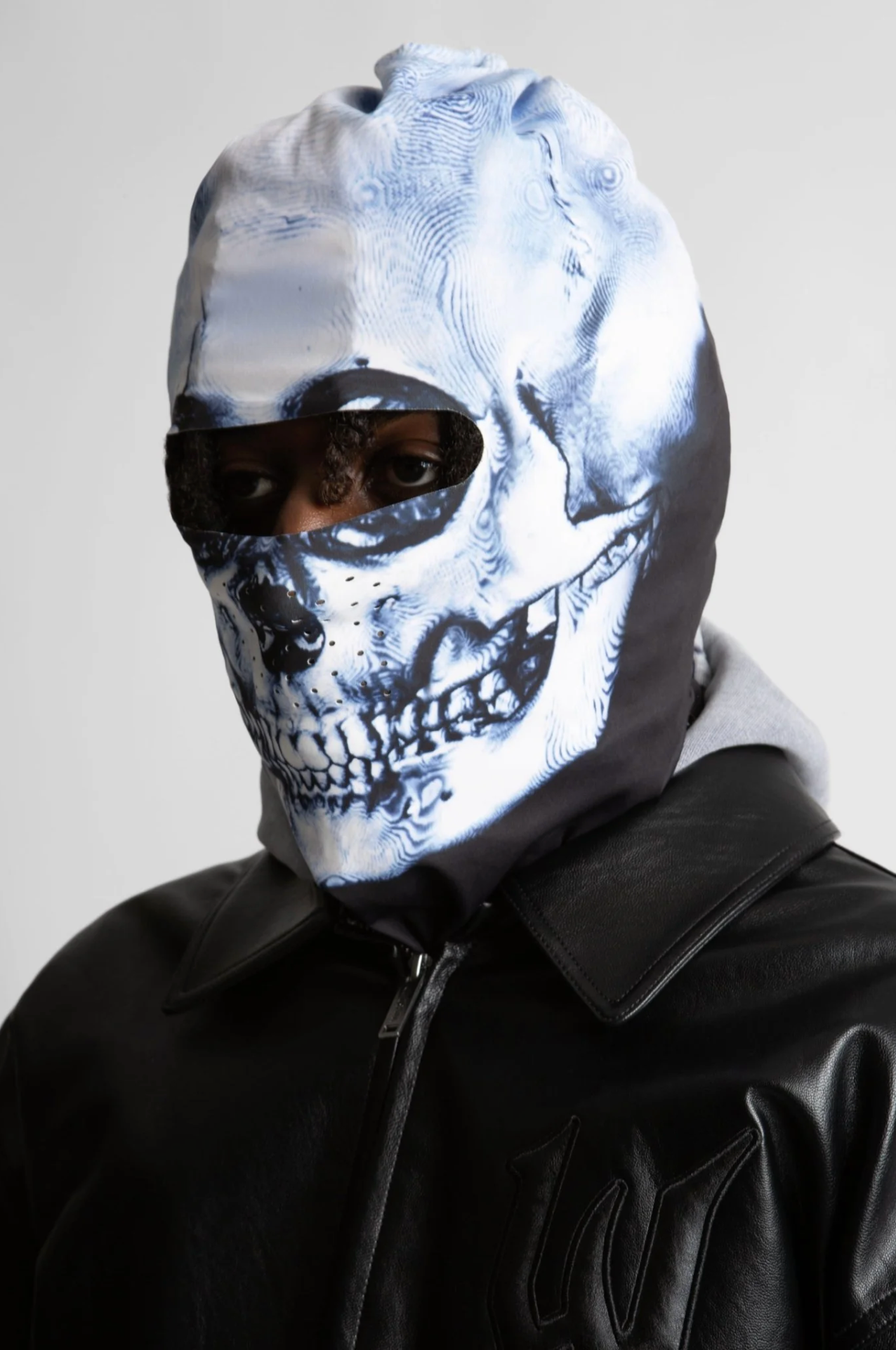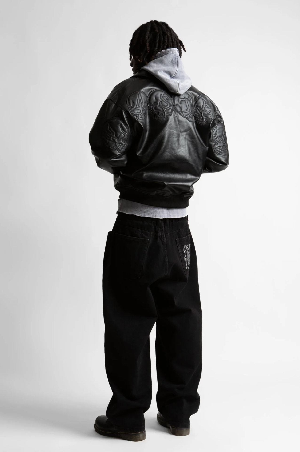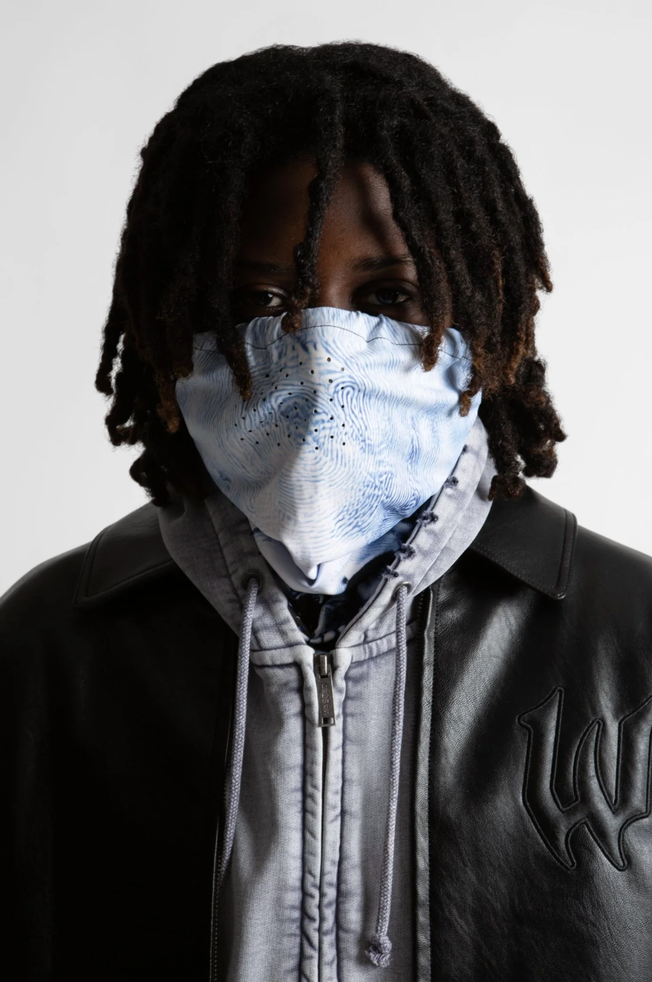 The Bury Varsity Jacket is made from faux leather. It features an inside pocket, two front pockets, and ribbed cuffs and hem. This model features the Bury logo with satin stitch panels on the front and back. It has a removable face warmer integrated into the collar.
