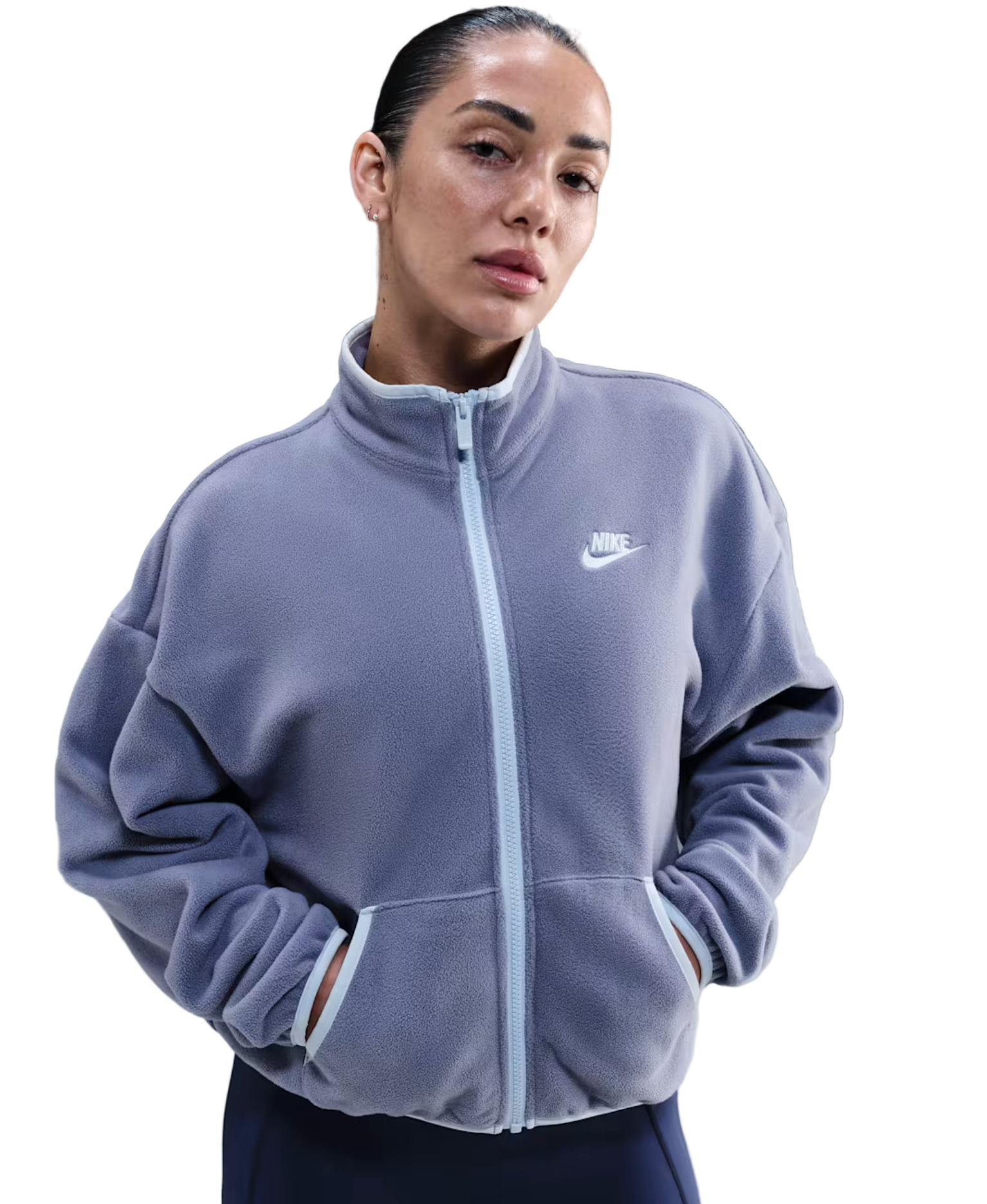 Layer up in this cozy track jacket. Its' lightweight fleece is brushed on both sides for all-around fuzzy comfort while the loose fit feels roomy through the body.