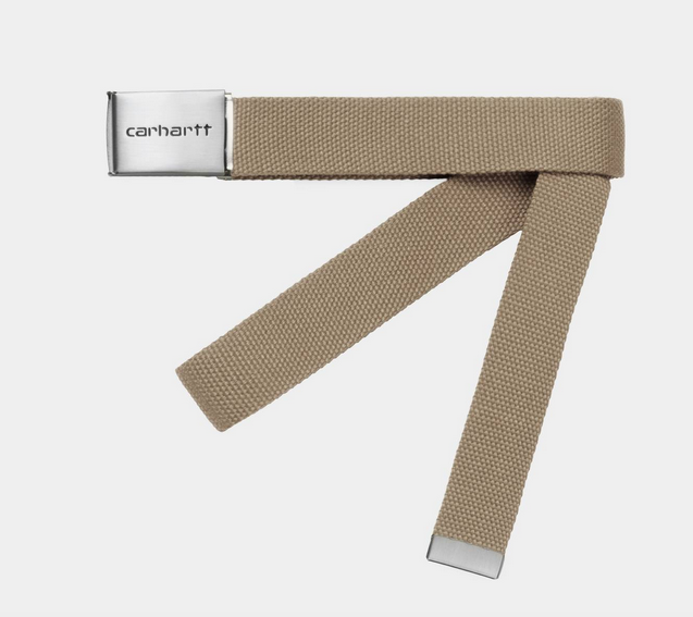 The Clip Belt Chrome is constructed from robust polyester canvas and features an interchangeable chrome metal clip buckle with contrast debossed Carhartt WIP branding. One size.