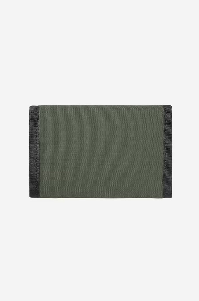 The Alec Wallet is constructed from Duck Canvas, which is a hardwearing and water-repellent fabric composed of recycled polyester. The wallet fastens with a Velcro® closure. Inside, it has a zipped bill compartment and six card slots, as well as a Velcro® coin pocket. Further hidden compartments can be found behind the card and coin spaces. A woven Square Label on the front completes the design.