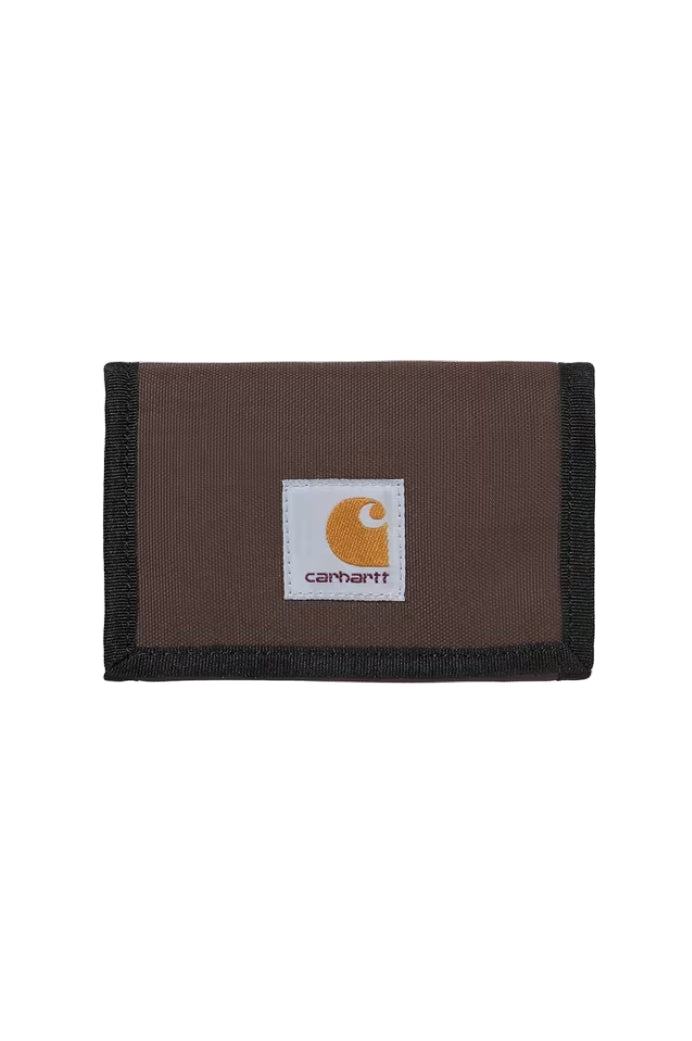 The Alec Wallet is constructed from Duck Canvas, which is a hardwearing and water-repellent fabric composed of recycled polyester. The wallet fastens with a Velcro® closure. Inside, it has a zipped bill compartment and six card slots, as well as a Velcro® coin pocket. Further hidden compartments can be found behind the card and coin spaces. A woven Square Label on the front completes the design.