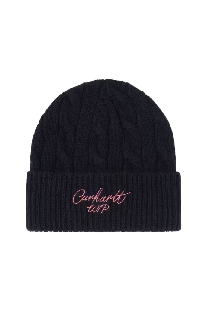 SIGNATURE CABLE BEANIE DEEP NIGHT/GLASSY PINK
