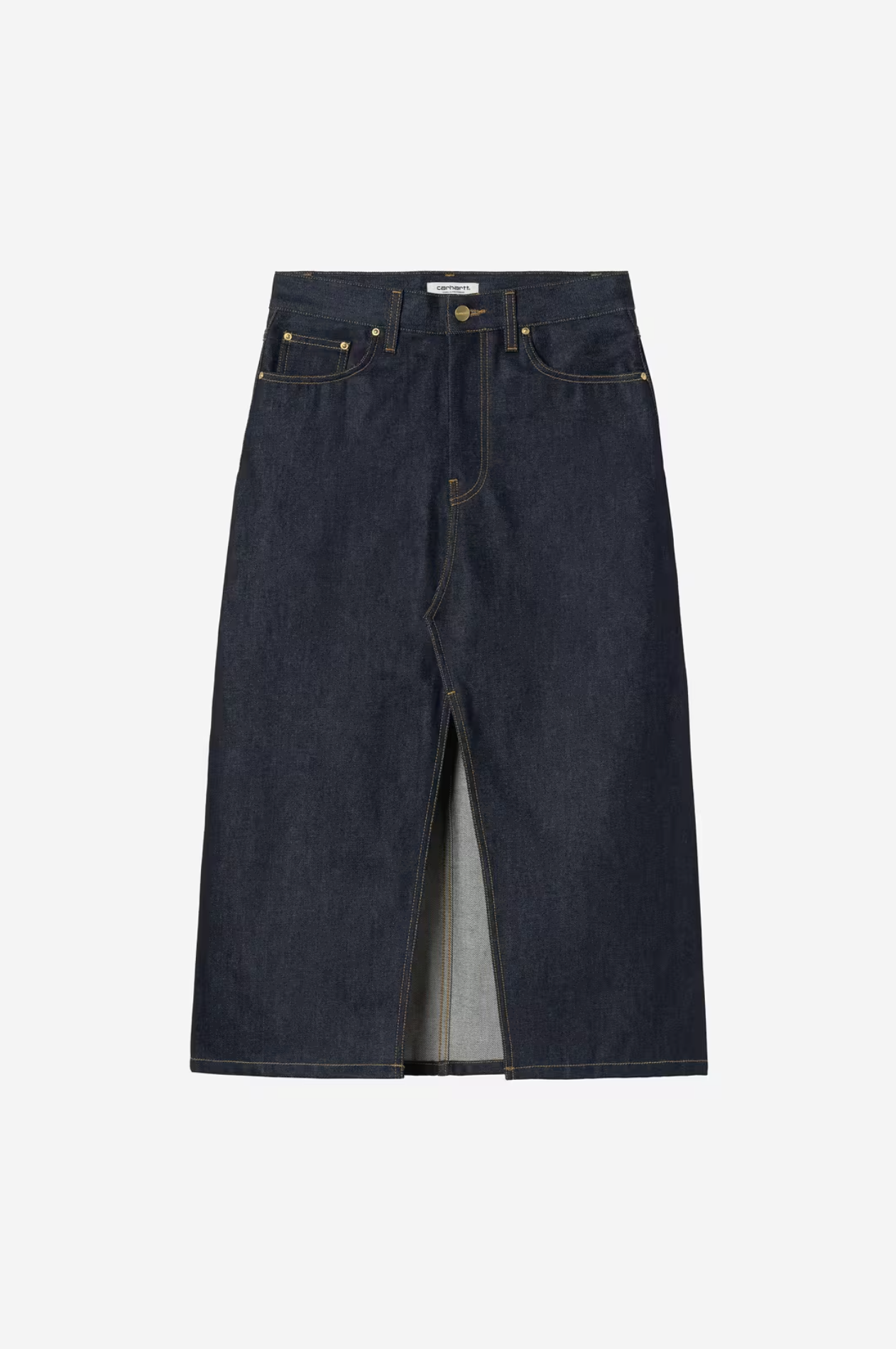 The Women's Brandon Skirt is made in a relaxed fit from heavyweight cotton denim. Based on a five-pocket jean, the item features a back yoke and has a front slit. Bartack stitching and metal rivets at vital stress points offer utilitarian touches. A woven Square Label completes the design.