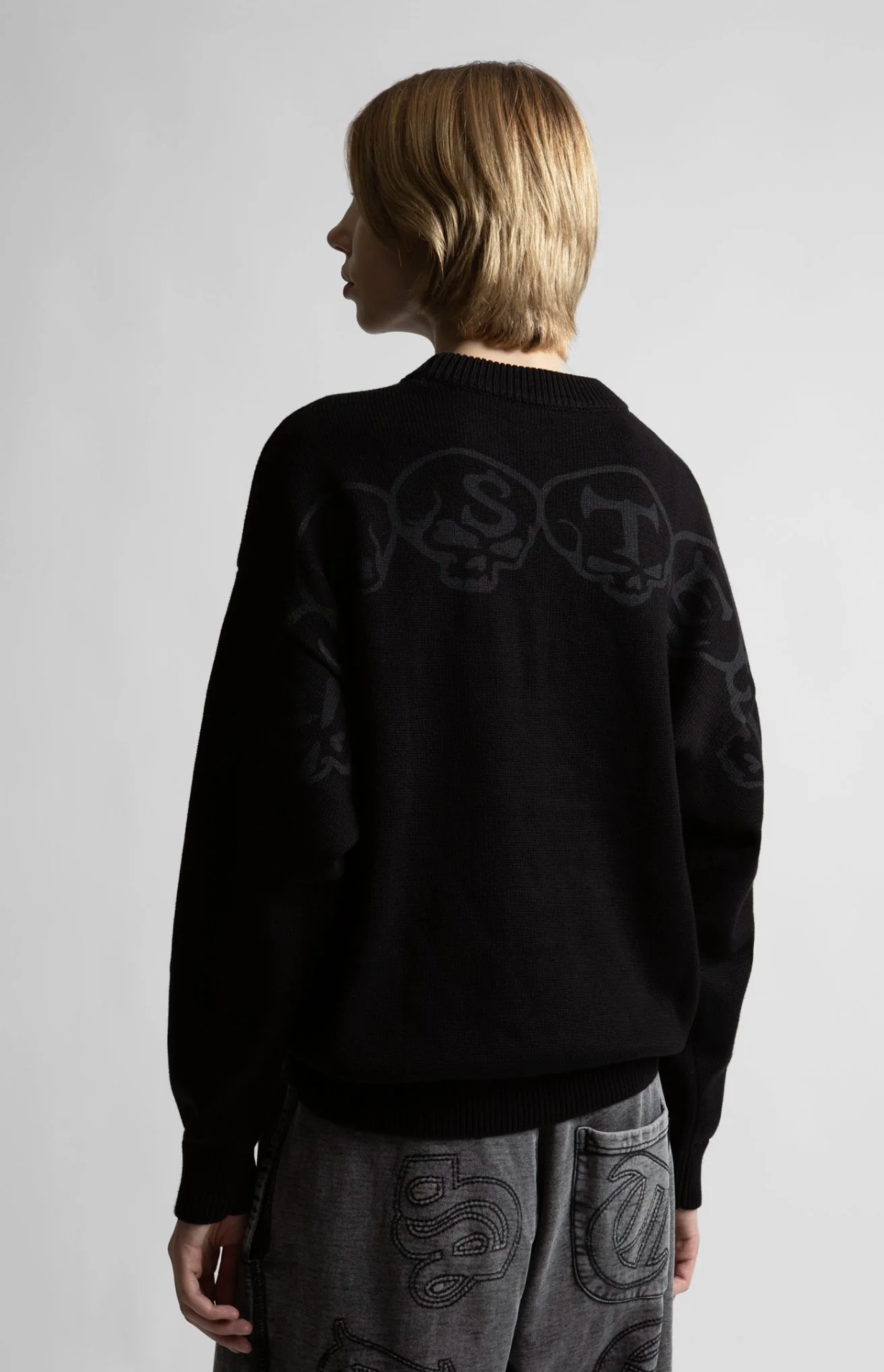 The Bury sweater is made in a thick knit. It features Bury artwork in jacquard. It features a boxy cut with ribbed collar and cuffs.