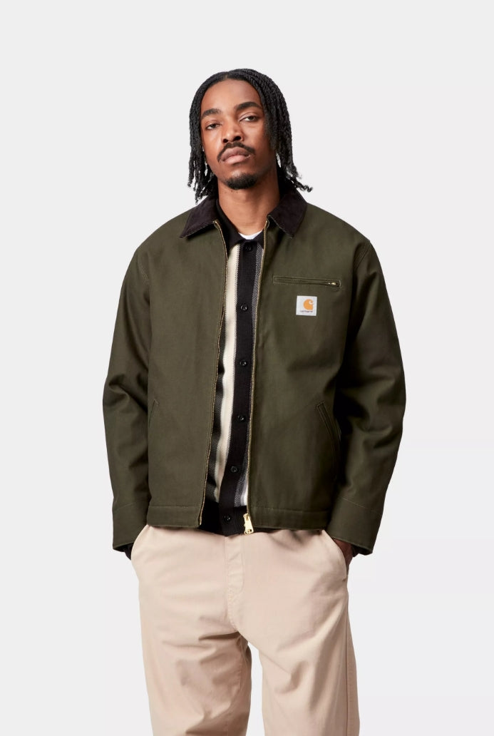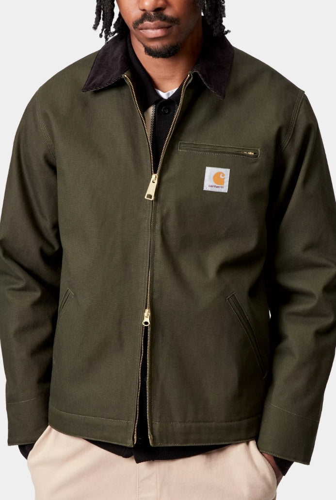 A Carhartt WIP classic, the Detroit Jacket is constructed in our hardwearing 12 oz Dearborn Canvas and features a blanket lining for warmth. A corduroy collar, as well as a gold-tone zip closure at the front and on the chest pocket complete the design.