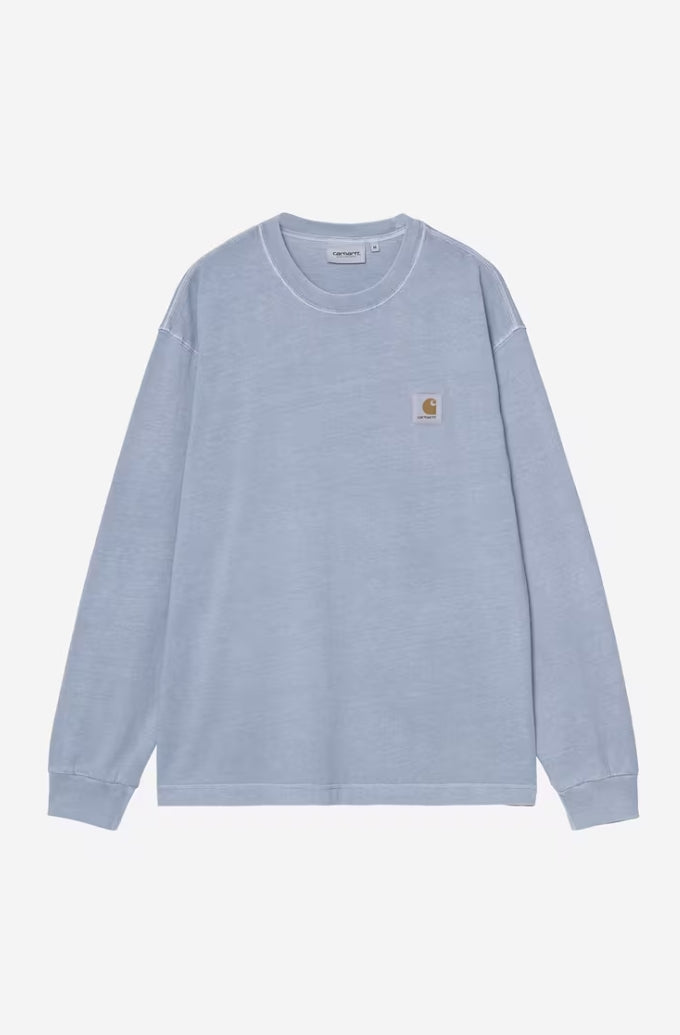 The L/S Nelson T-Shirt is made from lightweight cotton jersey in a loose fit. The item has also been garment-dyed for a softer feel and more complex color configuration. A woven Square Label, rendered murky by the dyeing process, appears on the chest.