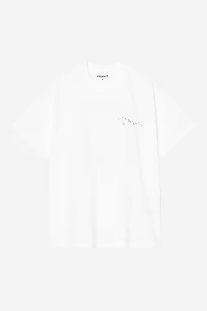 The S/S Okniceok 01 T-Shirt is made from lightweight cotton jersey in a loose fit. Graphic prints appear on the front and back.