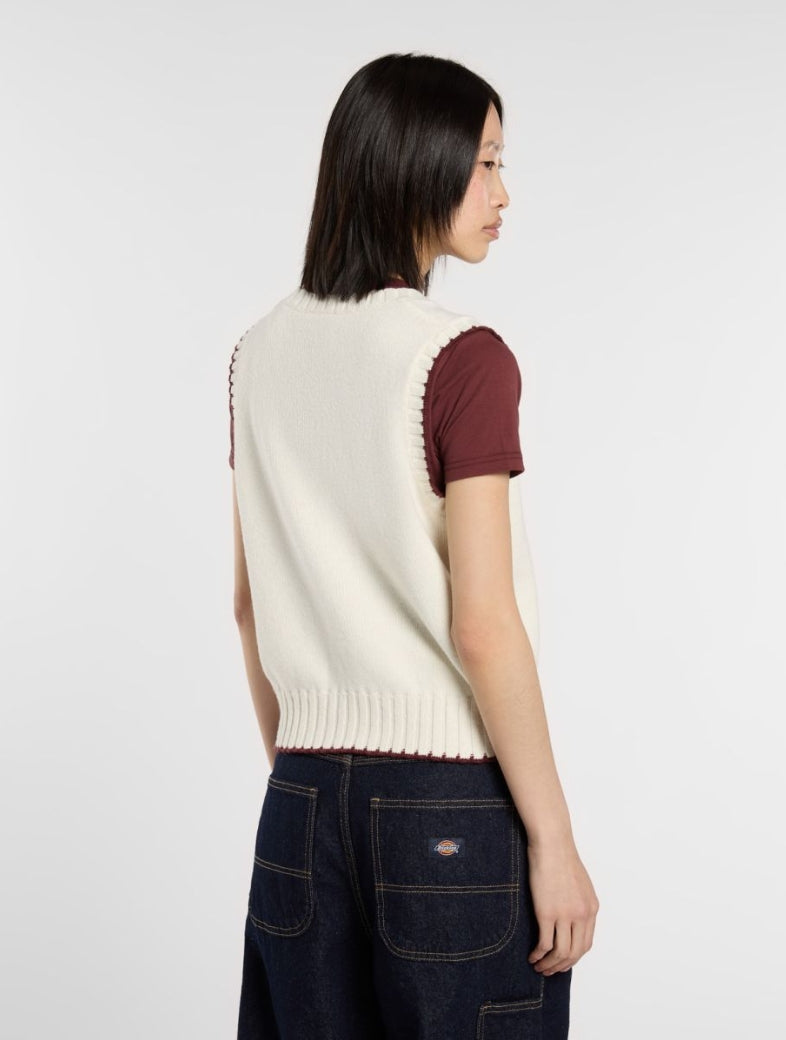 The Slayden jumper vest is a classically built knitted midlayer with a contemporary fit and fabrication. Soft and warm, this longer length jumper vest features a chunky ribbed hem, an embroidered Dickies script logo on the left chest, and the iconic woven Dickies label in the side seam.