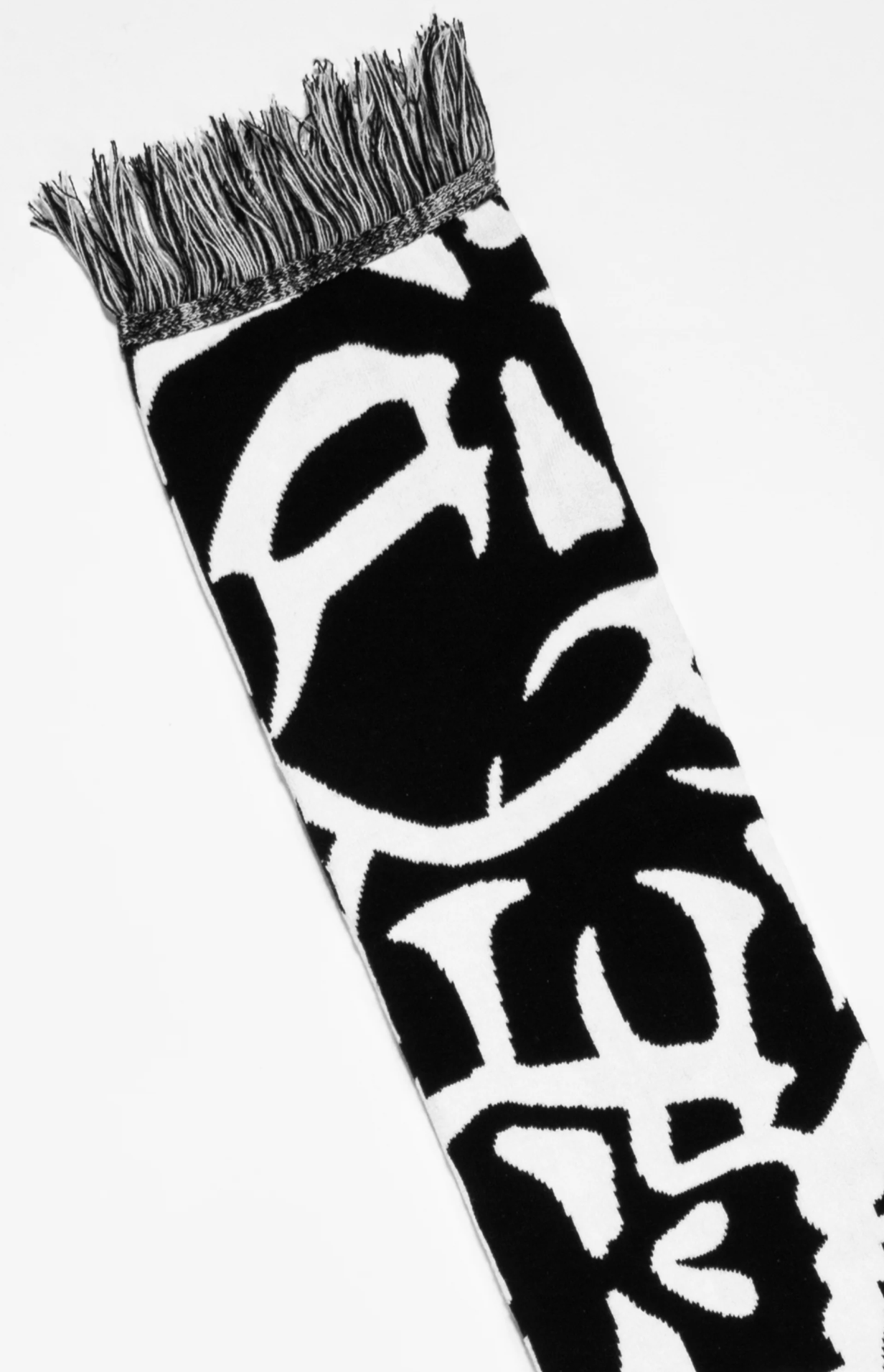 The Bury Scarf is inspired by iconic football scarves, featuring a jacquard design on the front and back.