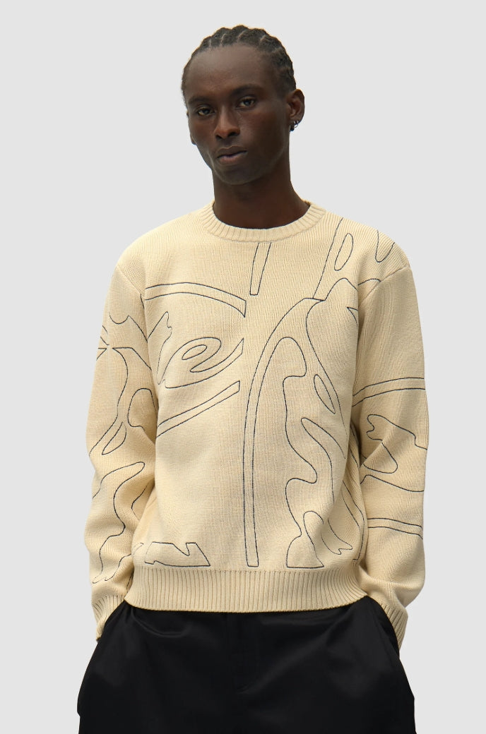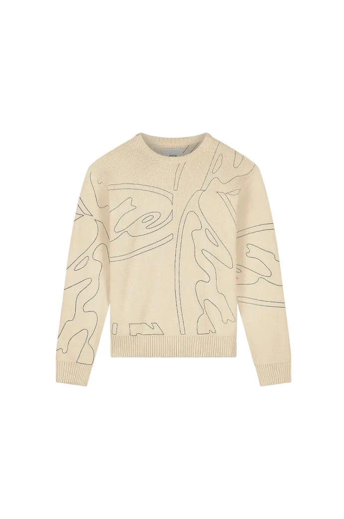 Made from heavyweight cotton, the knitted sweater comes in a cream colorway and has a regular fit. The knit features an all-over Arte graphic logo stitched in navy. The cream colored knit is finished with ribbed trimmings and has a regular fit.