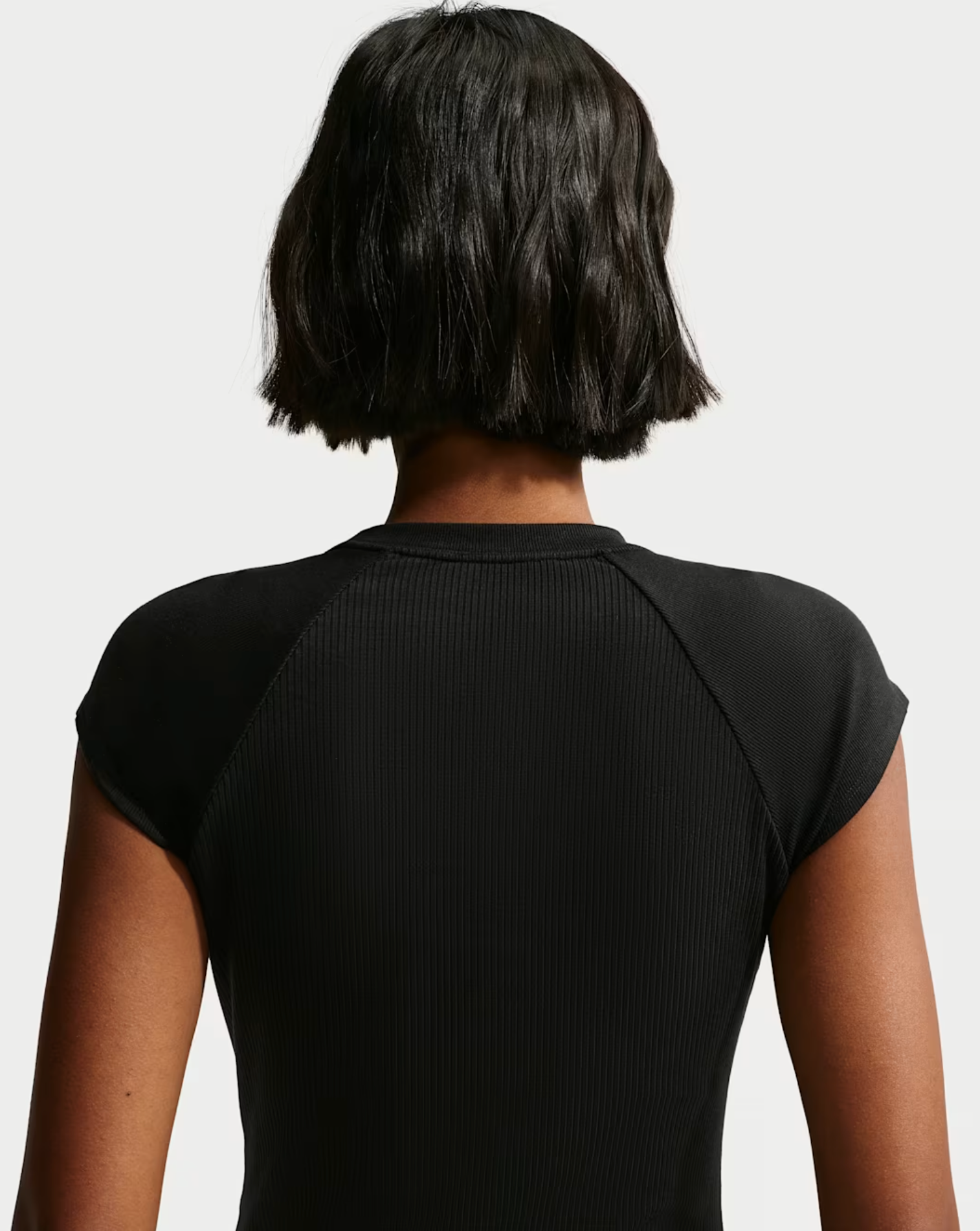 This top is crafted with our soft, mini-ribbed jersey fabric that's stretchy with a slight drape, making it perfect for everyday wear. A wider rib at the raglan sleeves and neckline is paired with a mini-rib through the body to add dimension to your look. Its tight fit has a body-skimming effect.