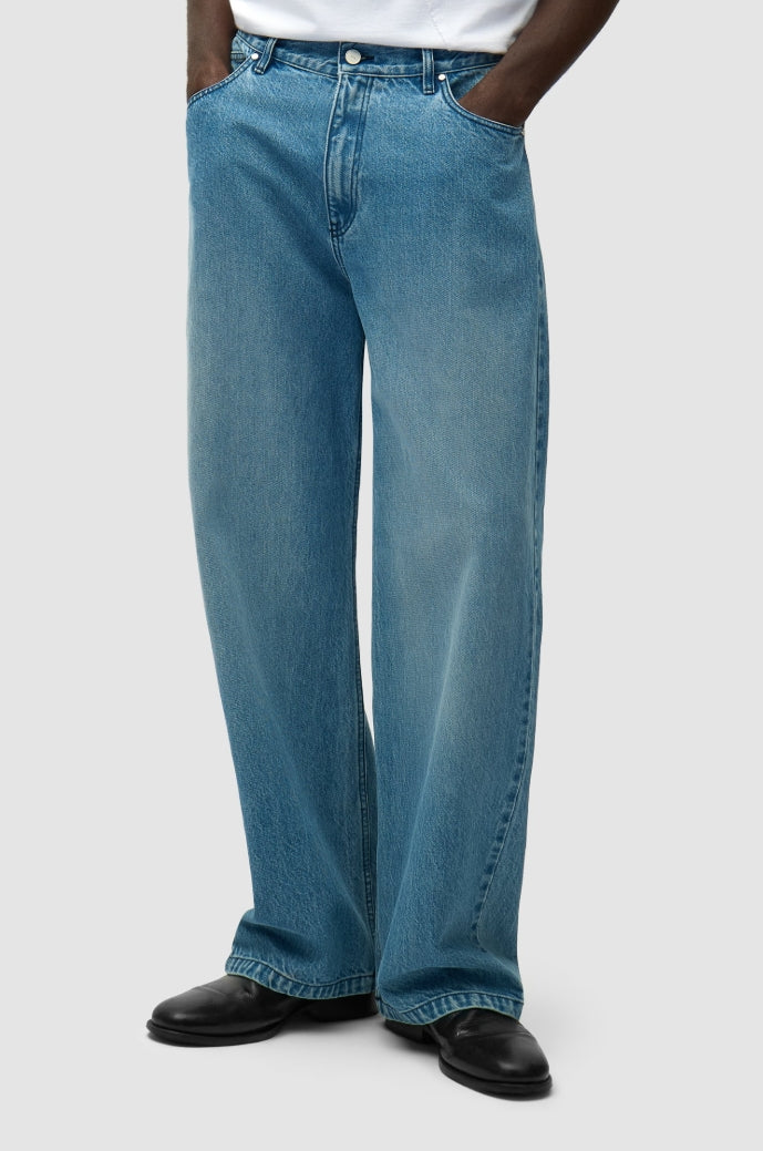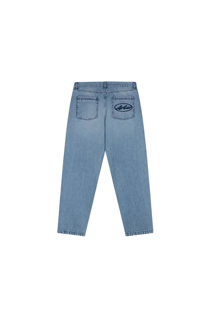 The denim trousers are an everyday pair of pants that feature a seasonal Arte logo stitched in navy on the right back pocket. The light blue denim pair comes in a classic 5-pocket style and has a slightly tapered yet relaxed fit.