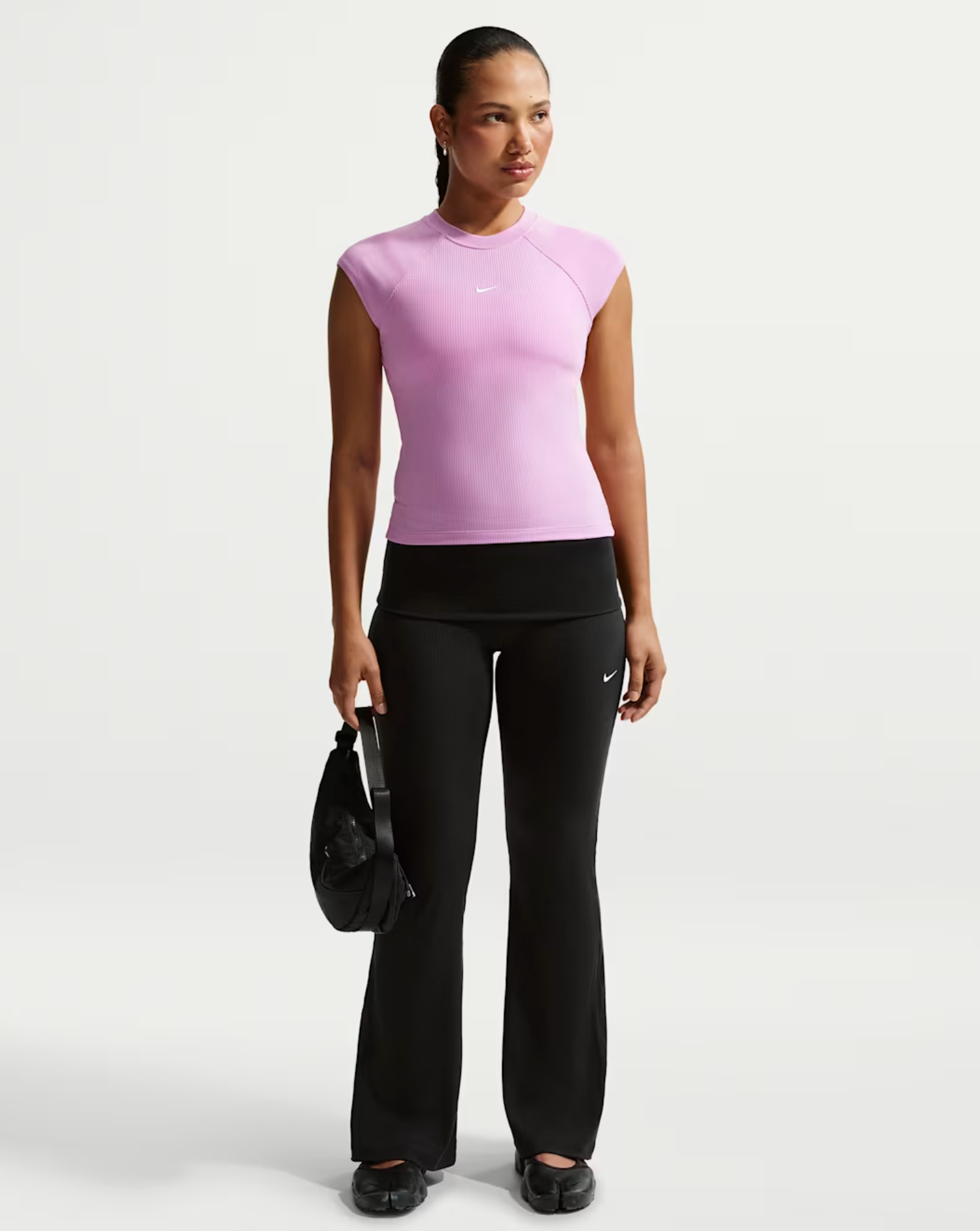 Add some flair to your look. These trousers are made from our soft, finely ribbed jersey fabric, which is stretchy and drapes beautifully, making them ideal for everyday wear. The wider ribbing on the legs is combined with narrower ribbing at the folded waistband to add depth to your look. The slim fit creates a flattering silhouette at the seat and thighs.
